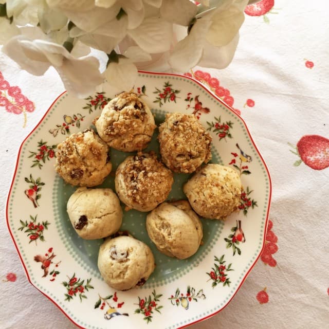 Üzümlü tarifleri yapmasını da yemesini de çok severim. Bu kurabiyede en sevdiğim ceviz ve üzümü bir arada kullandım.