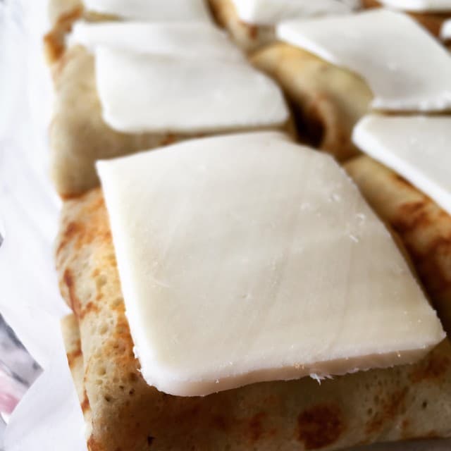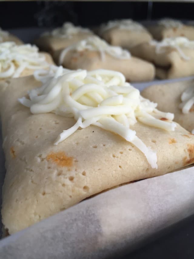 Kreplerin üzerine dilimlenmiş kaşar peynir koyarak fırınladım. İsterseniz rendelenmiş kaşar peynirde koyabilirsiniz.