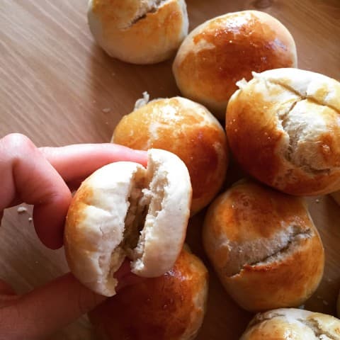 - Mayalanan hamurdan ufak parçalar alıp yuvarlayın. Bütün hamuru bu şekilde hazırlayıp yağlı kağıt serilmiş tepsiye dizin ve 10 dakika mayalanması için bekletin.