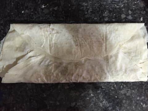 - Daha sonra mendil gibi bütün yufkayı katlayın. Yani önce uzun kenarları sonra da yanları. ( birbirinin üstüne hafif gelecek şekilde)