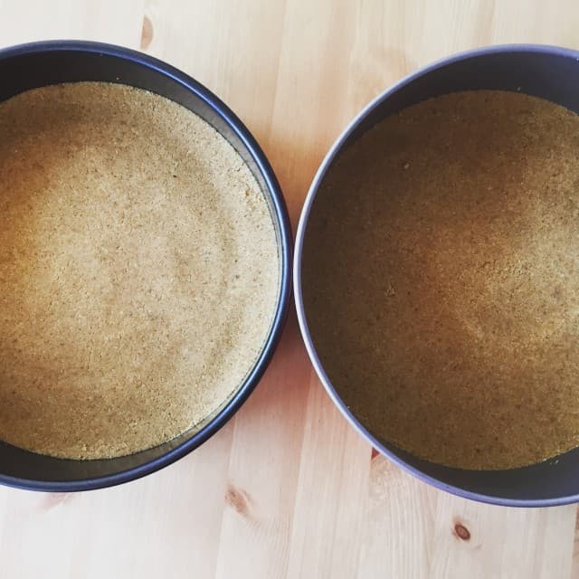 - İlk olarak tabanını hazırlayın. Bisküviyi robotta un haline getirin. Tereyağını eritin. Ardından bunları bir kaba alın, robotta çekerek toz haline getirdiğiniz cevizide ekleyerek iyice karıştırın.