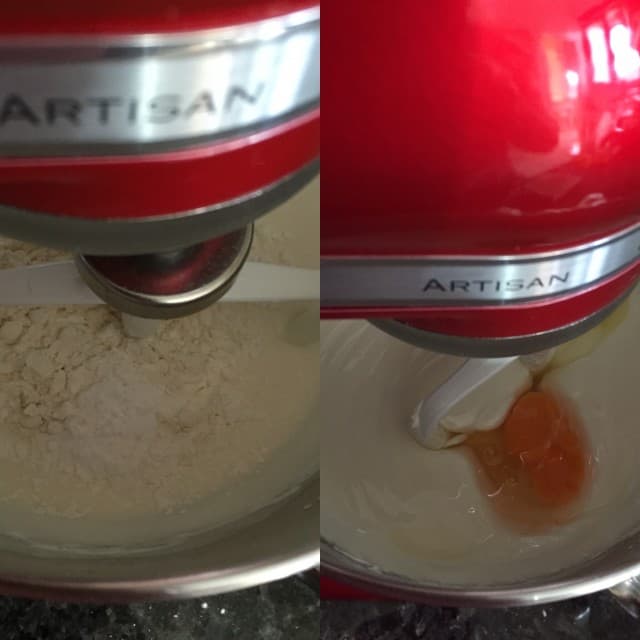 Peynirler ve şeker pürüzsüz hale gelince un, nişasta ve vanilya ekliyorum. Bir sonraki aşama da yumurtaları tek tek ekliyorum,
