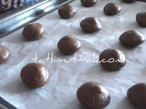 - Hamurdan ceviz büyüklüğünde parçalar alarak yuvarlayın ve tepsiye dizin. Bütün hamuru bu şekilde hazırlayın. Önceden ısıtılmış 200 derecelik fırında 10 dk pişirin ardından ısıyı 17 dereceye düşürüp 10 dk daha pişirin ve tepsiyi fırından alın.