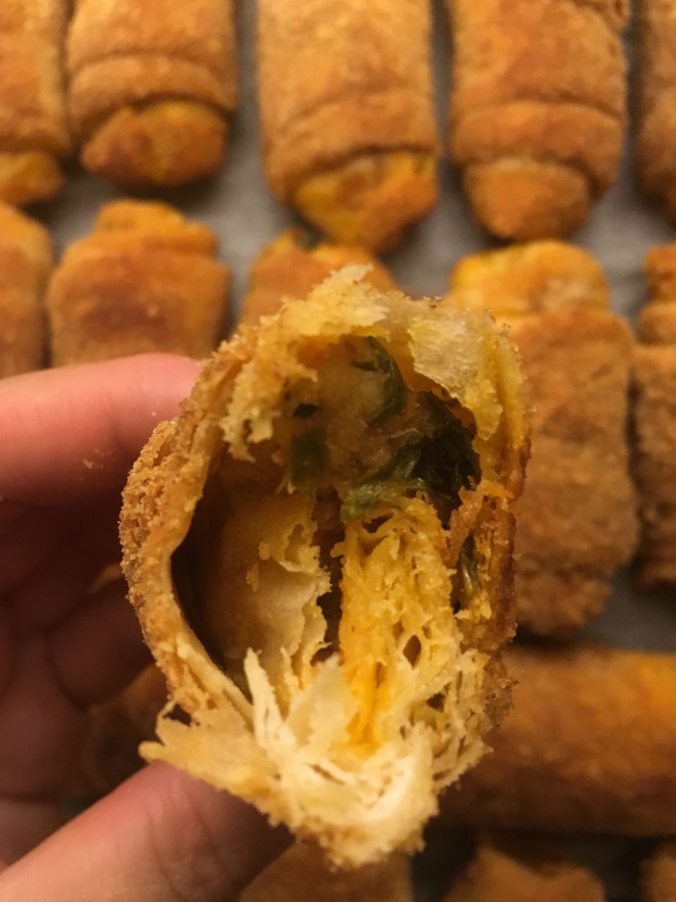 4. Ufak bir kaseye su ve zeytinyağ koyup karıştırın. Ayrı bir kaseye de galeta ununu koyun. Hazırladığınız börekleri önce su ve yağ karışımına batırın, daha sonra galeta ununa bulayın. Bütün börekleri bu şekilde hazırlayıp yağlı kağıt serilmiş fırın tepsisine dizin.