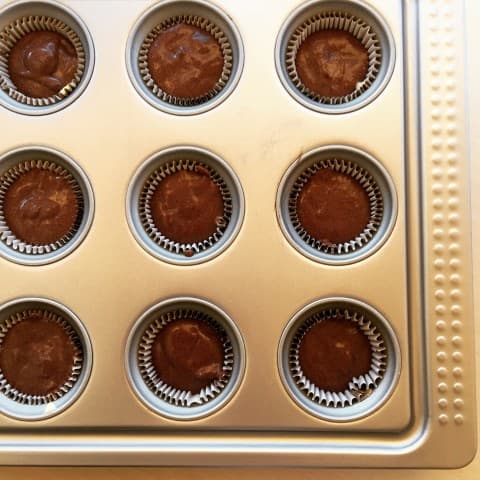 - Hamuru dökeceğiniz kalıplara muffin kağıtlarını yerleştirin. Kalıplara sırasıyla yemek kaşığı ile vanilyalı ve kakaolu hamurdan bir sıra koyun. Bir bıçak yardımıyla hamuru sağa, sola karıştırın.