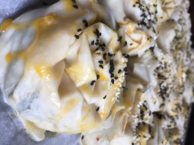 - Böreklerin üzerine yumurta sarısı sürüp, susam ve çörek otu serpin. 180 derecelik fırında pişirin.
