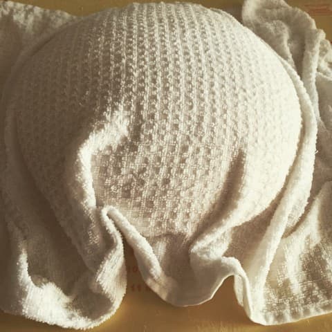 - Hamuru dinlendireceğin tezgaha birazcık un serperek hamuru üzerine koyun. Sıcak su ile yıkayıp sıktığınız havluyu hamurun üzerine kapatın ve yarım saat dinlendirin.