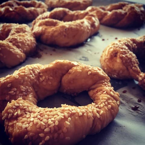 Pazar günü en sevdiğim hamur işlerinden birini yaptım, hem bu defa eşimde yardım etti. Beraber çok güzel simitler hazırladık. Yaptığım bu tarifin tadı pastane simidine yakın. Sokak simidine göre daha yumuşak.