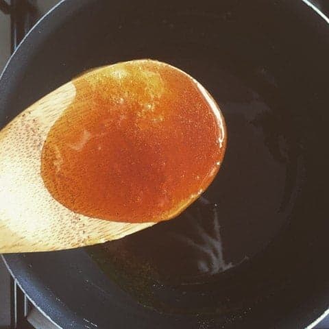 - Karamel sos için; 1 su bardağı toz şeker, 50 gr tereyağ ve 1 kutu krema